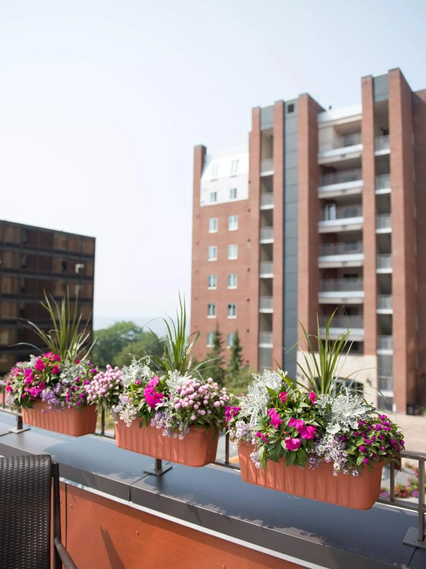 - Convenient self-watering deck railing planter installs in seconds